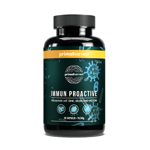 Unser Immunsystem sorgt dafür, dass Fremdstoffe, Viren und Bakterien keine Chance haben, sich im Körper einzunisten. Die Abwehr unseres Körpers ist dabei pausenlos aktiv. Gerade während der Grippe- oder Erkältungszeit arbeitet unser Immunsystem auf Hochtouren, um Krankheiten vorzubeugen und zu bekämpfen. Aber auch im Frühling schützt ein intaktes Immunsystem uns vor Krankheitserregern oder Allergien. Daher ist es sinnvoll, dein Immunsystem so gut es geht zu unterstützen und deinen Körper mit allen Nährstoffen zu versorgen, die er braucht, um normal zu funktionieren. Bei einer Bestellung von Immun Proactive erhältst du eine zusätzliche Sicherheit durch die 30 Tage-Geld-zurück-Garantie. Darüber hinaus wurde das Produkt von einem unabhängigen Labor auf Reinheit, Sicherheit und Qualität geprüft.
