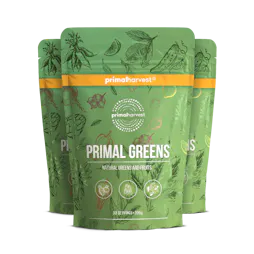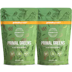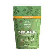 Primal Greens kombiniert eine Vielzahl natürlicher Pflanzenstoffe in einer sorgfältig abgestimmten Rezeptur. Dazu gehören Vitamine und Mineralstoffe aus pflanzlichen Quellen, ebenso wie sekundäre Pflanzenstoffe, Aminosäuren und Enzyme. Enthalten ist eine pflanzenbasierte Mischung aus Gersten- und Weizengras, fermentiertem Obst und Gemüse (36 Sorten), Spirulina, Chlorella und Grüntee-Extrakt.