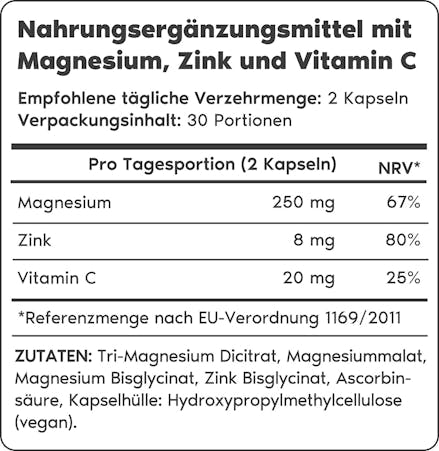 - Komplex mit 250 mg Magnesium sowie Vitamin C und Zink