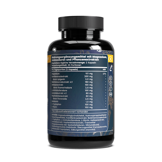 - Die Rezeptur vereint Pflanzenextrakte, die seit Jahrhunderten in verschiedenen Kulturen geschätzt werden – darunter Baldrianwurzel, Kamille und Lavendel. Auch Apigenin, ein natürlicher Pflanzenstoff, ist enthalten.