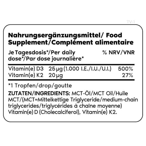 - Pro Tropfen 25 μg Vitamin D und 20 μg Vitamin K